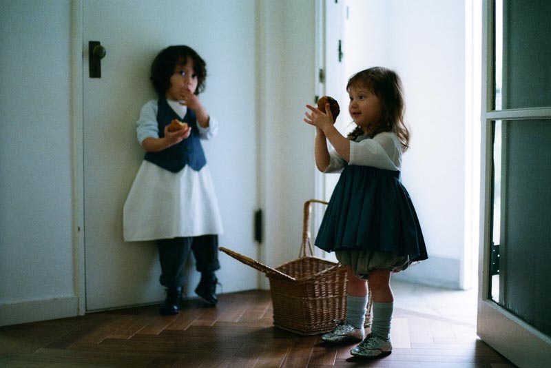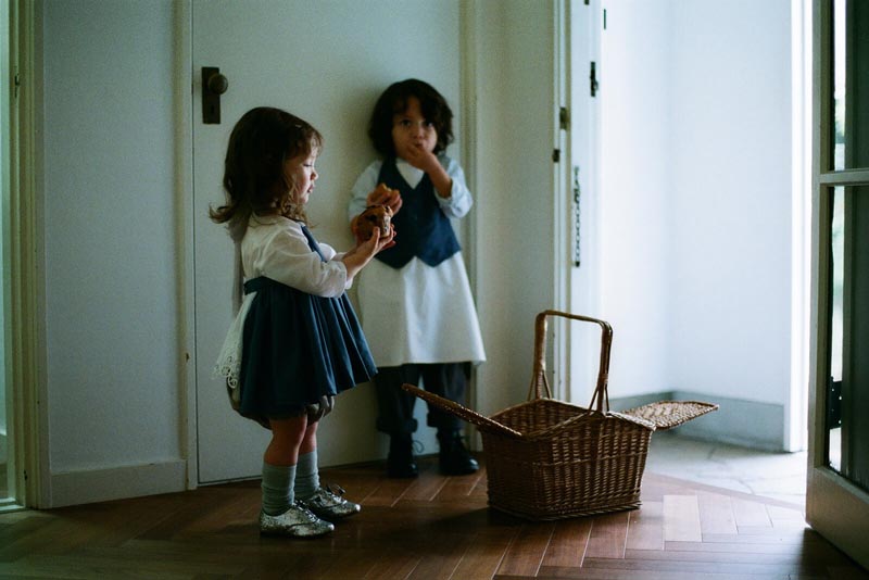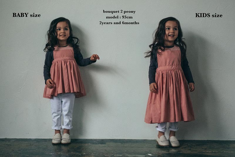 꽃다발 이미지로 듬뿍 늘어진 디자인으로 부드럽게 퍼지는 달콤한 인상. 목의 리본이 백뷰의 포인트.