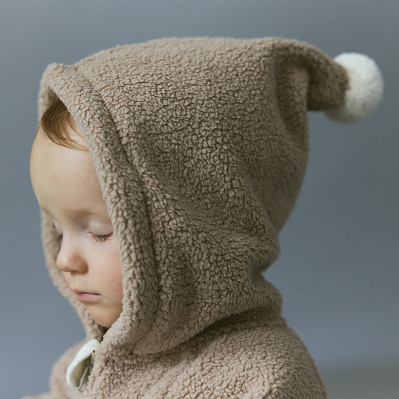 A pointed hood that brings out smiles, with playful pom-poms for the sweetest silhouette. Snuggled inside, sleeping peacefully, baby looks just like a little star.