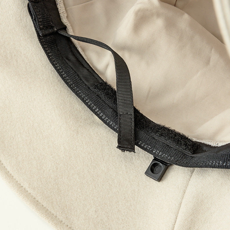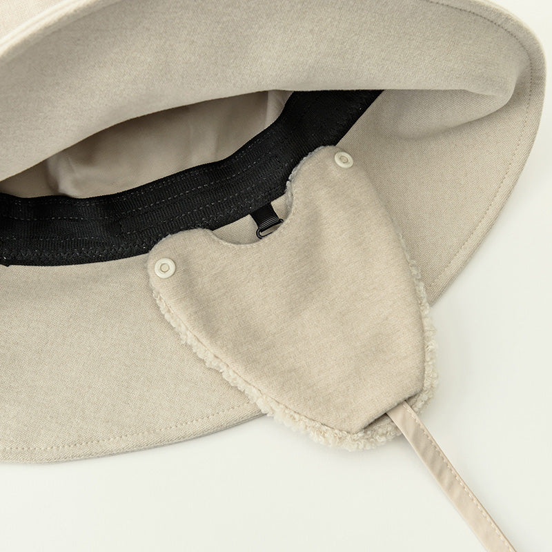 Detachable ear flaps combine two textures: soft boa on one side and a wool-like fabric on the other. Wear them either way, or detach them as needed. Adjusts warmth from autumn to early winter and through the coldest days.