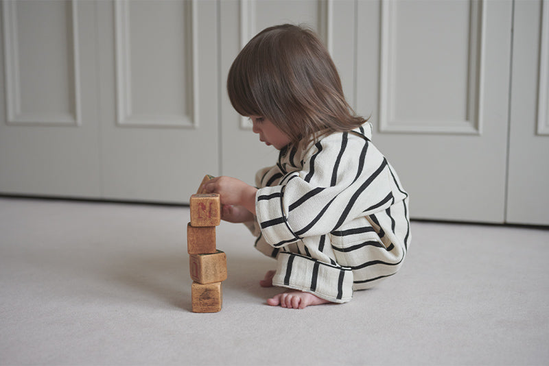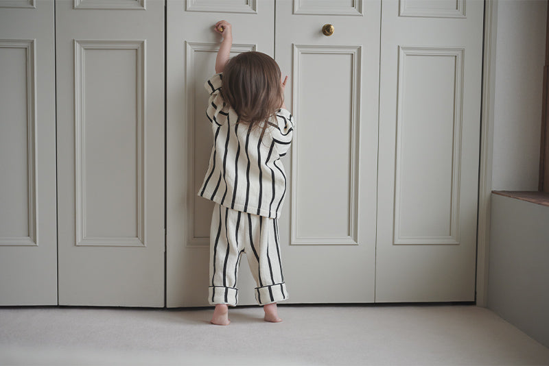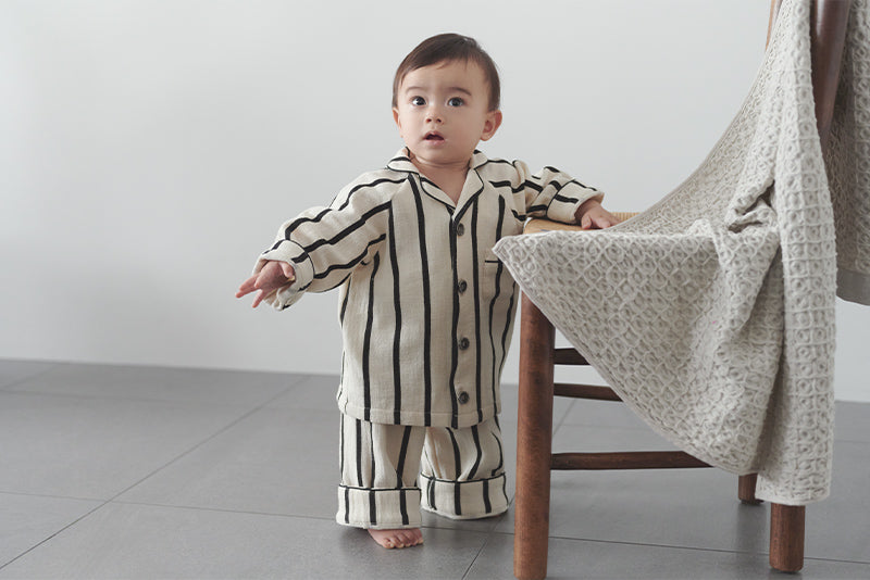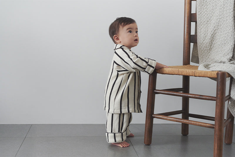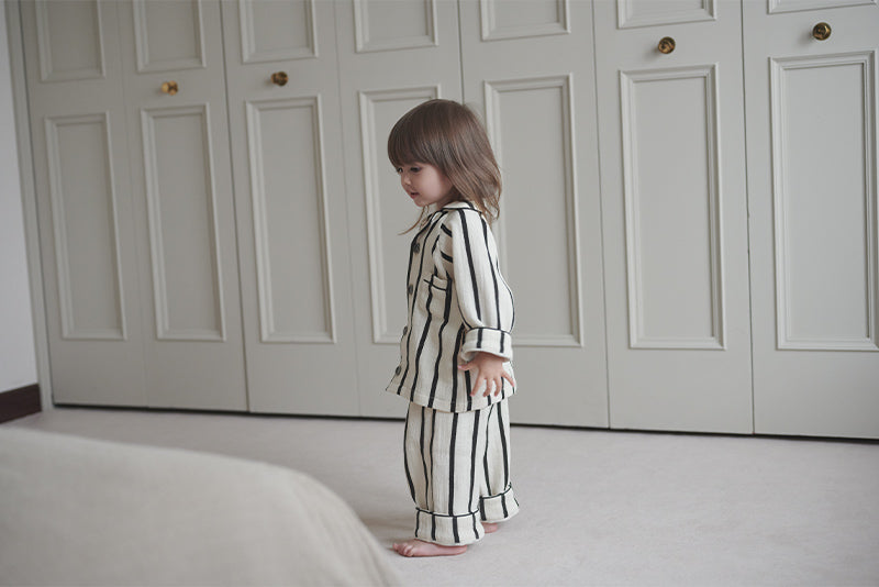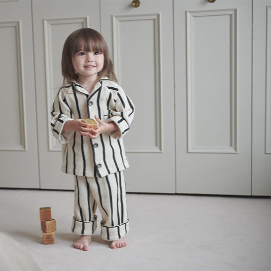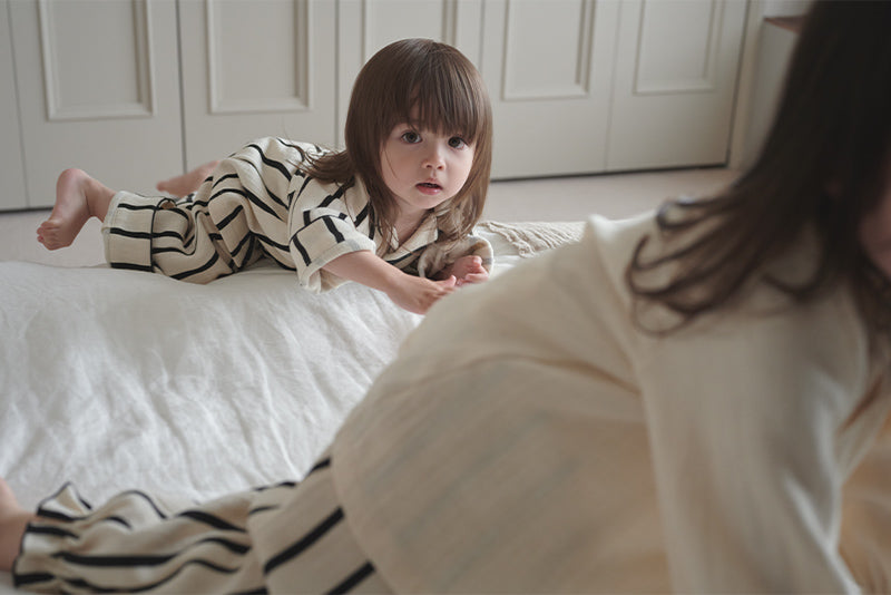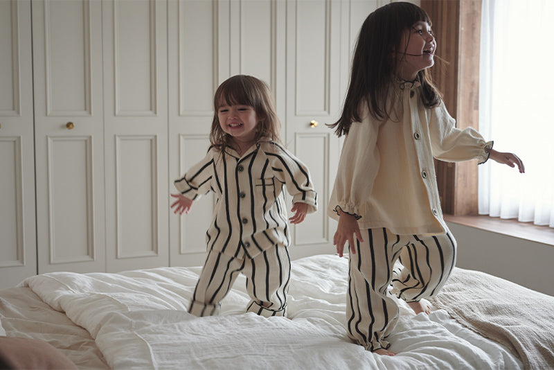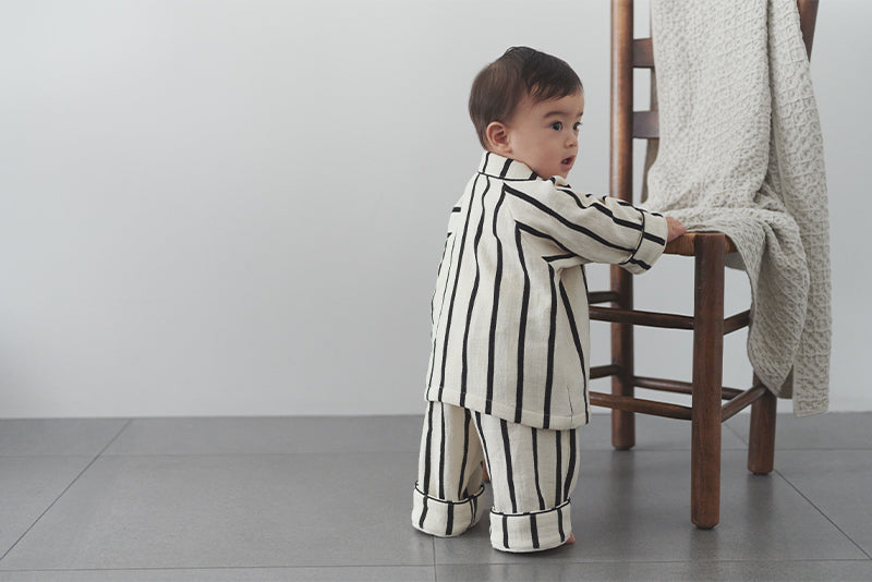 Monotone stripes give a classy, yet pop impression. Together with lull, these are made to coordinate matching outfits between siblings.