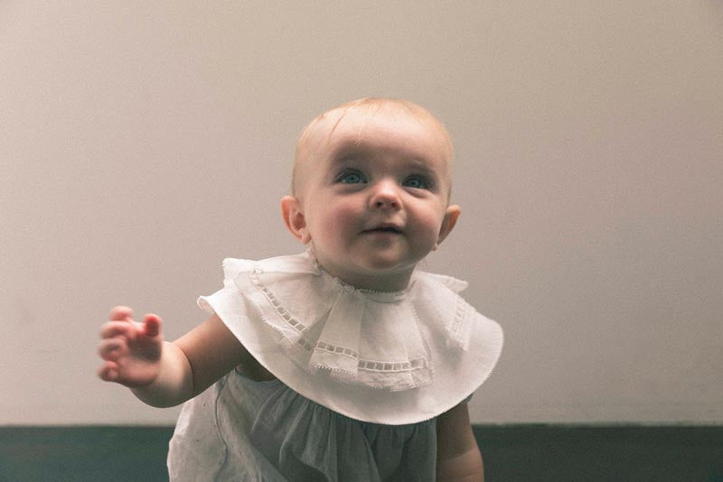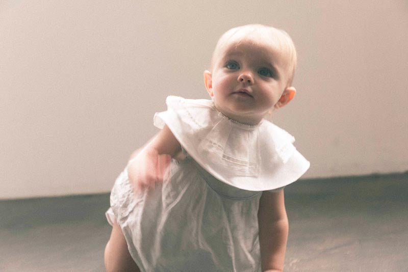 The tapestry can be displayed in your home as a reminder of birthdays and special anniversaries. The milestone cards let you capture each stage of your baby’s growth, from their very first day through their first birthday, with photos and messages. The bib, in soft off-white, is edged with delicate picot lace and gentle pleats to highlight your baby’s pure sweetness.
