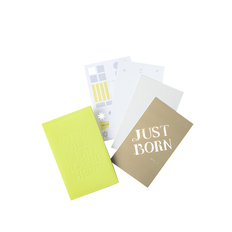 A just-born gift set made to celebrate and record the day your baby arrives. Complete with an anniversary tapestry, milestone cards, and a sweet bib, it’s a keepsake collection for treasuring those first moments.